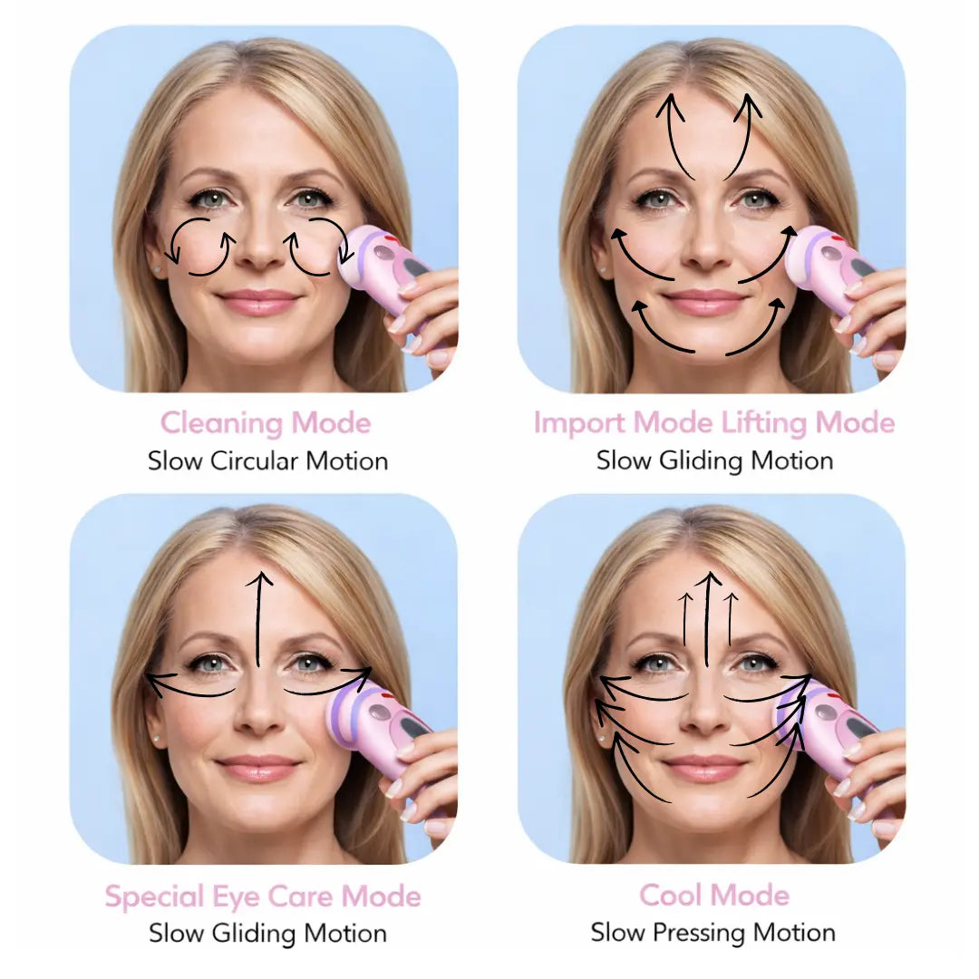 Use slow circular or upward motions depending on the mode. Repeat each motion 5-10 times per area.